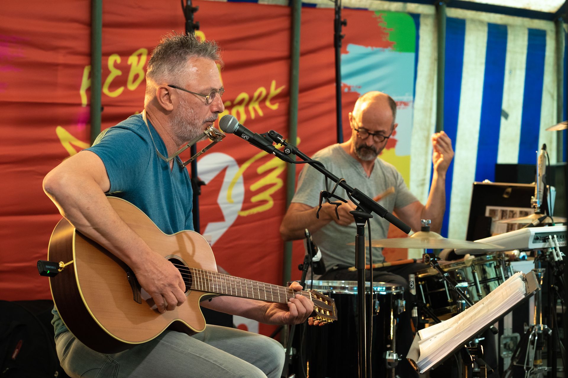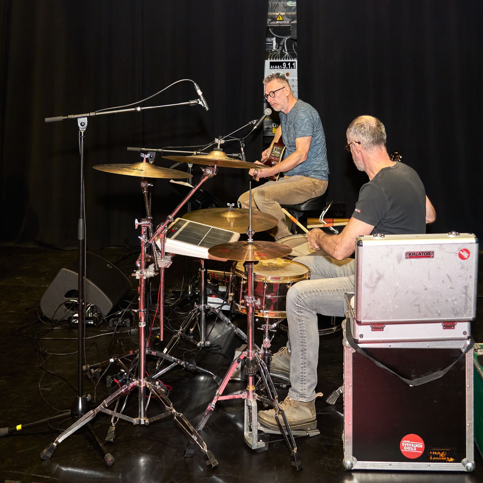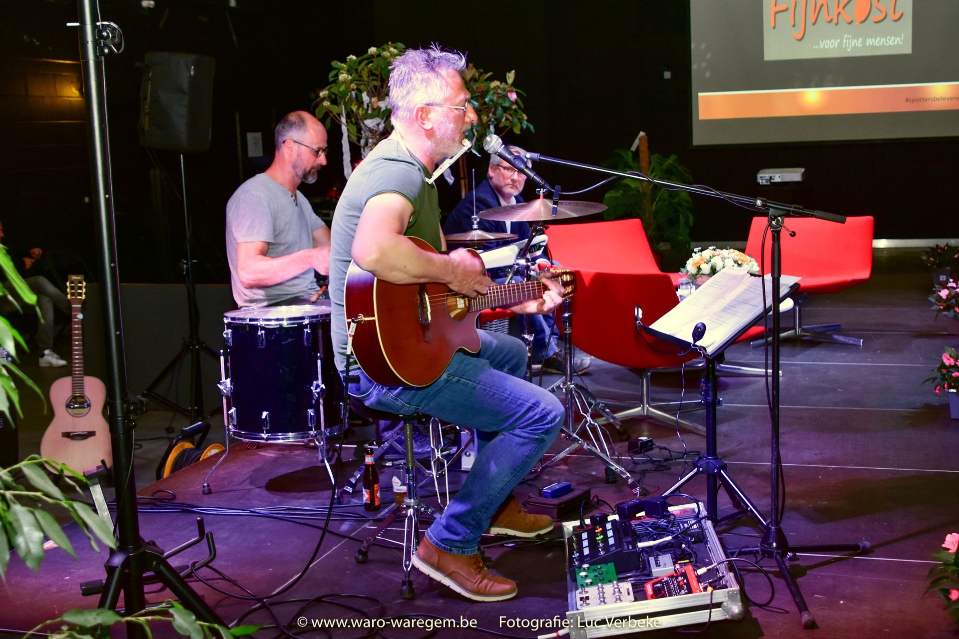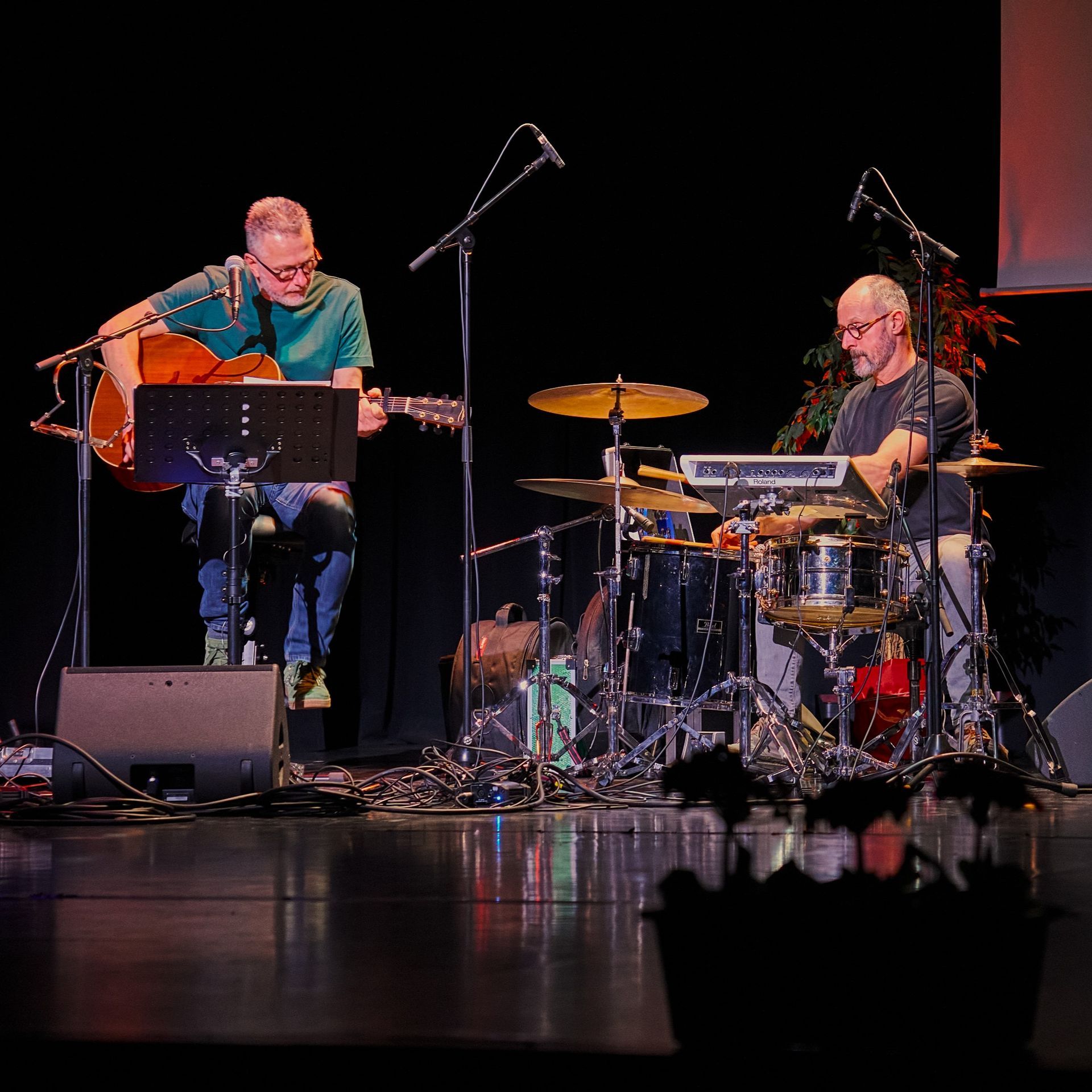 Deze tweemansformatie, Jan Tyberghien op gitaar en zang, Francis Gielen op drums en percussie, brengt je versterkt akoestisch Engels- , Frans- & Nederlandstalige nummers van allerlei allooi op een eigenzinnige wijze. Een boodschap is steeds aanwezig. Lied en verhaal worden vlot en met een knipoog gelinkt aan de actualiteit. Humor en sentiment zijn nooit ver zoek. We richten ons voornamelijk naar een luisterpubliek. Huiskamerconcerten, recepties, vernissages, cultuurevents, bedrijfsfeestjes, teambuildings, plein- en park, een leuk concept, ... . Fijnkost...voor fijne mensen!