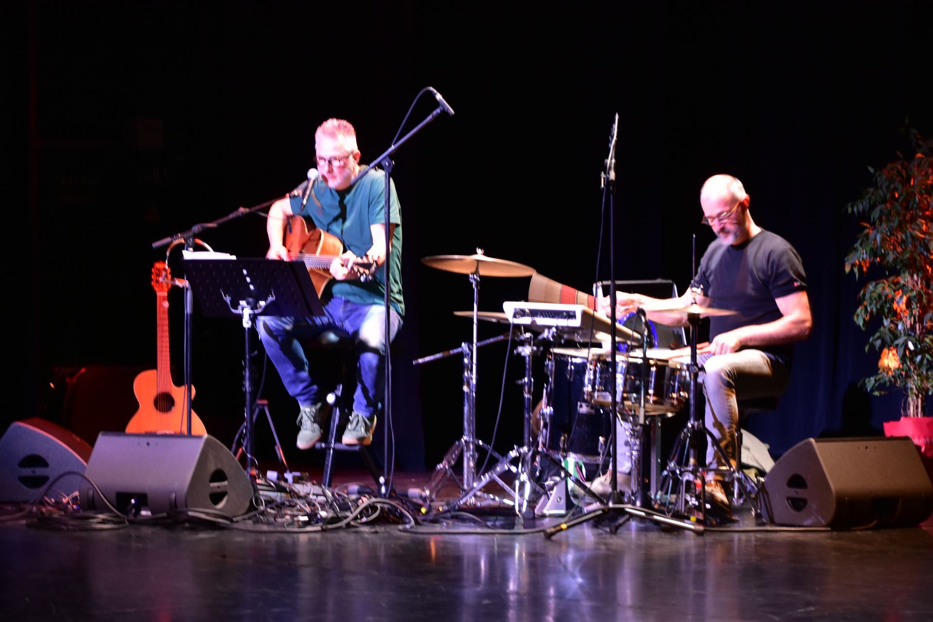 Deze tweemansformatie, Jan Tyberghien op gitaar en zang, Francis Gielen op drums en percussie, brengt je versterkt akoestisch Engels- , Frans- & Nederlandstalige nummers van allerlei allooi op een eigenzinnige wijze. Een boodschap is steeds aanwezig. Lied en verhaal worden vlot en met een knipoog gelinkt aan de actualiteit. Humor en sentiment zijn nooit ver zoek. We richten ons voornamelijk naar een luisterpubliek. Huiskamerconcerten, recepties, vernissages, cultuurevents, bedrijfsfeestjes, teambuildings, plein- en park, een leuk concept, ... . Fijnkost...voor fijne mensen!