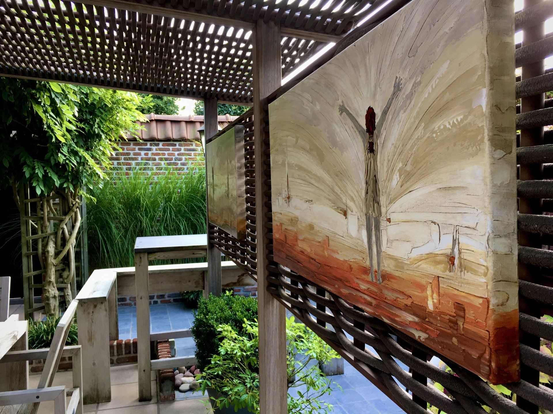 Enkele van mijn schilderijen vormen een perfecte match bij het vakmanschap van 'De Bosbeke'.
