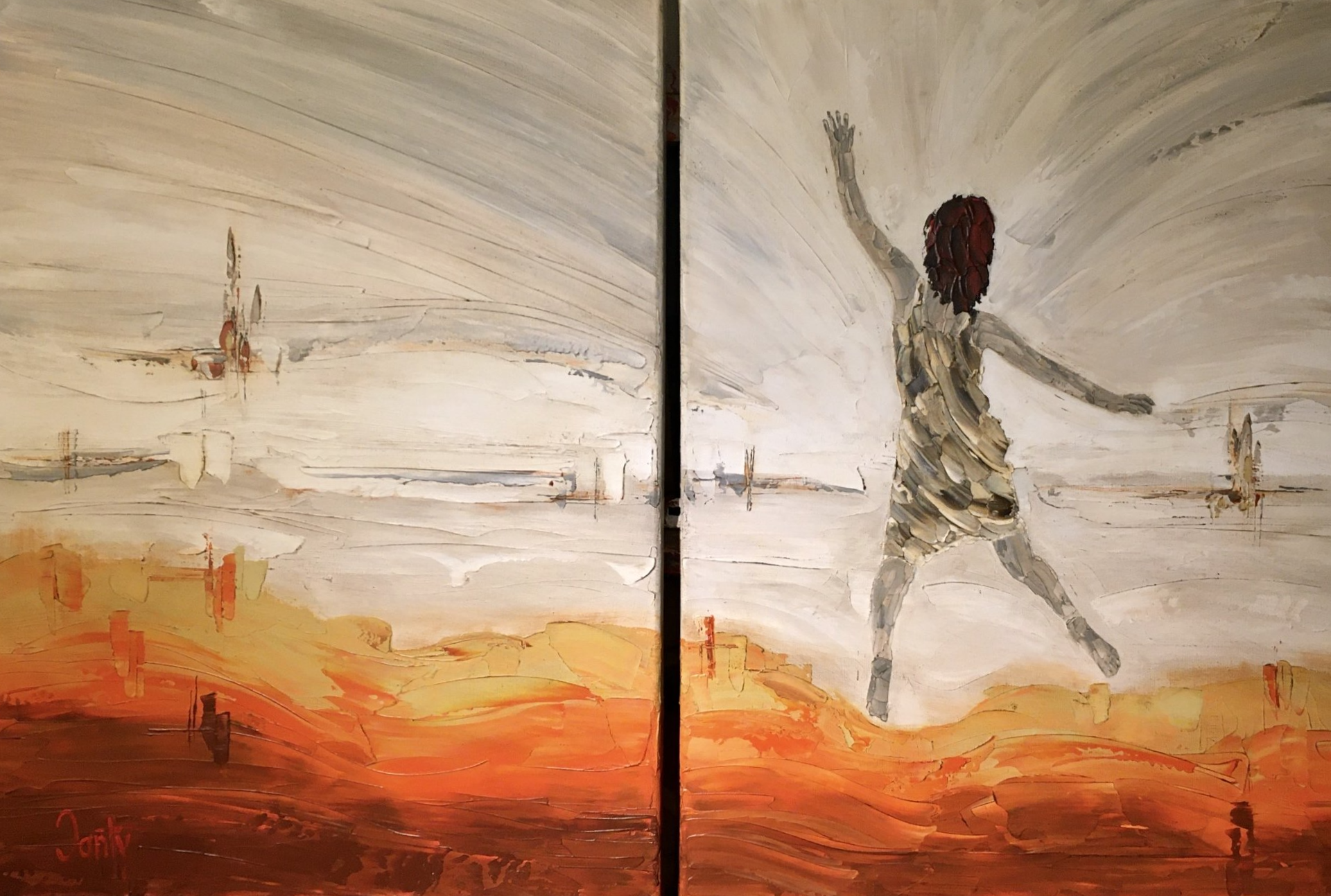 Janty schildert zowel abstract als figuratief in een eigen typerende stijl.